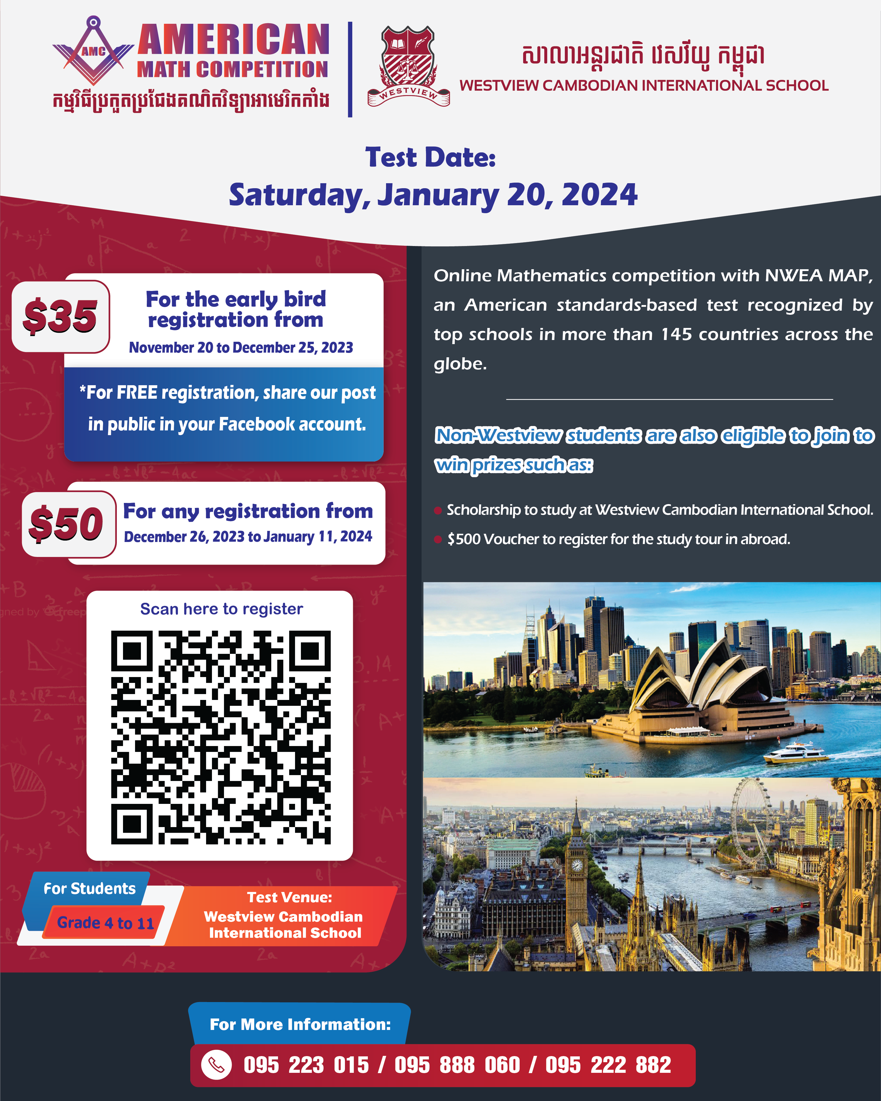 The AMC will take place on Saturday, January 20, 2024 at Westview Cambodian International School.
