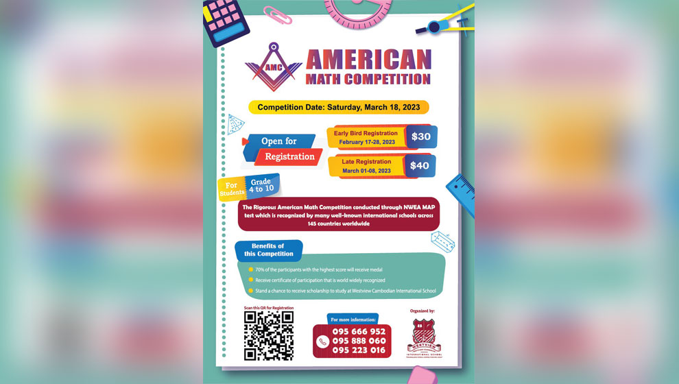 The AMC will take place on Saturday, March 18, 2023 at Westview Cambodian International School.