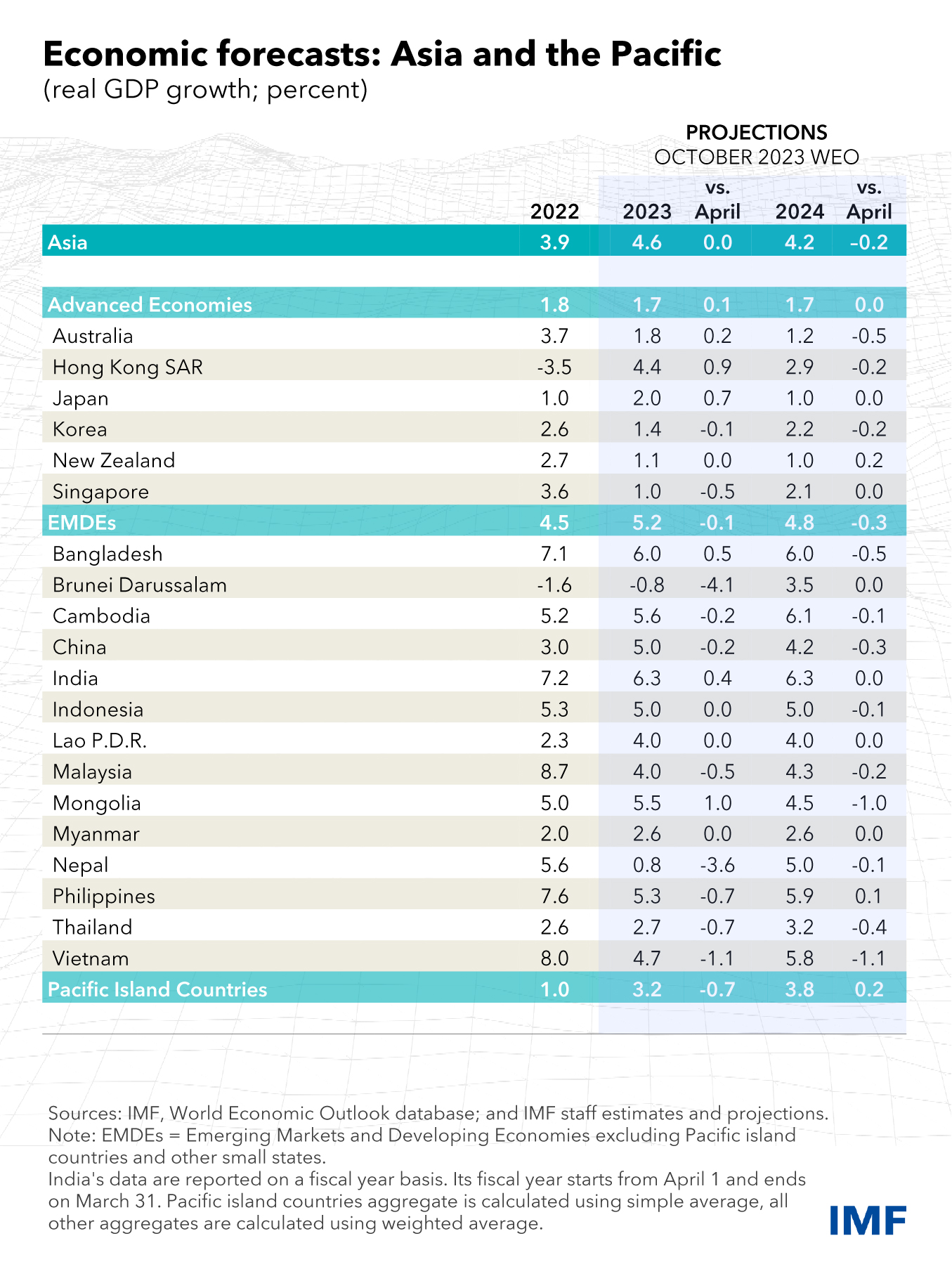 The global environment remains highly uncertain, and while risks to the outlook are more balanced than they were six months ago, Asia’s policymakers must stay the course to ensure continued growth and stability. On the downside, a more protracted real estate crisis and limited policy response in China would deepen the regional slowdown. And a sudden tightening of global financial conditions could lead to capital outflows and put pressure on Asia’s exchange rates that would threaten the disinflation process.