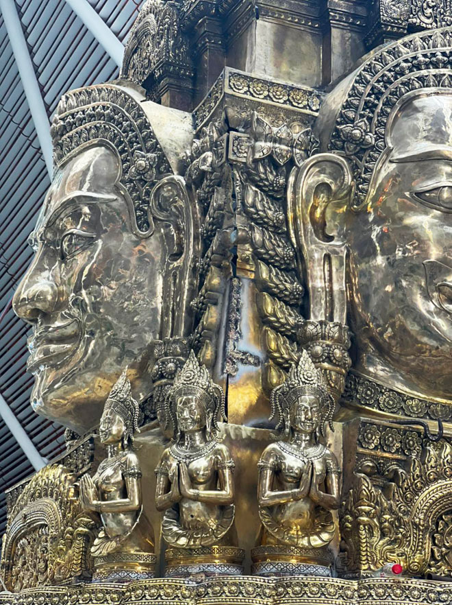 Adding an architectural perspective, Raksmey pointed out the modern styled canopy at the centre of Siem Reap-Angkor International Airport, which from a Khmer viewpoint, symbolises Mount Meru. The Brahma statue, standing majestically in front of the canopy, becomes the immediate focal point for arriving passengers.