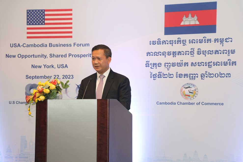 Prime Minister Hun Manet addresses the US-Cambodia Business Forum in New York City on September 22. CCC