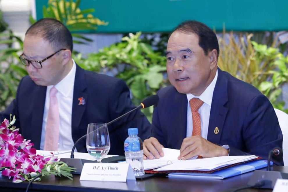 Senior Minister Ly Thuch (right) joins High Level Dialogue Forum on Mine Action on May 20. CMAA