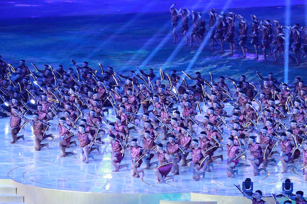 A mass performance of Kun Lbokator, a traditional Khmer martial art, at the closing ceremony of the SEA Games on May 17. Hong Menea