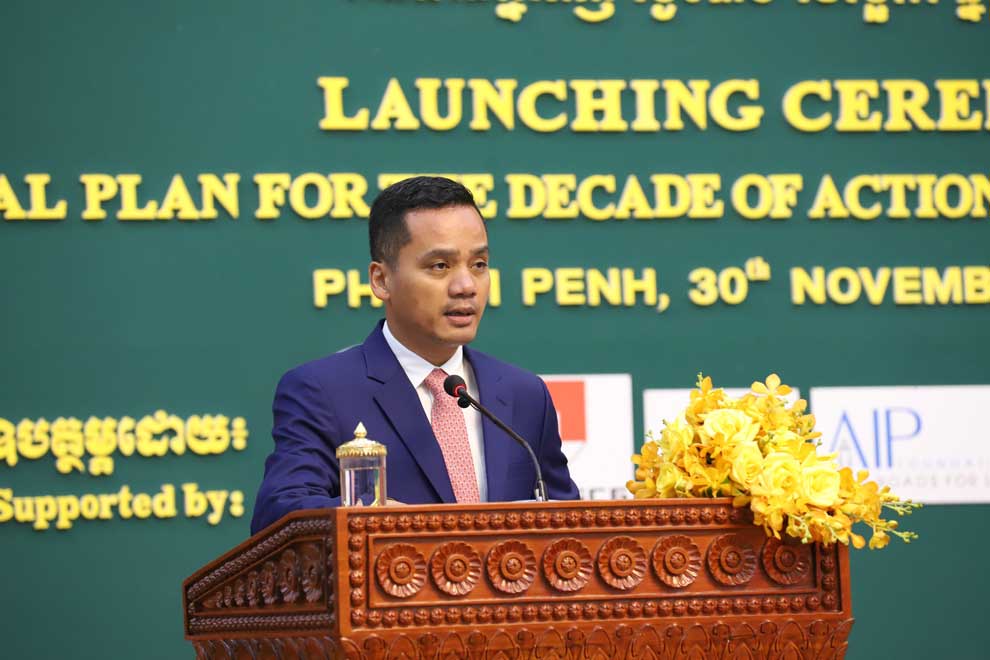 Interior minister Sar Sokha addresses a meeting on November 30. SKS