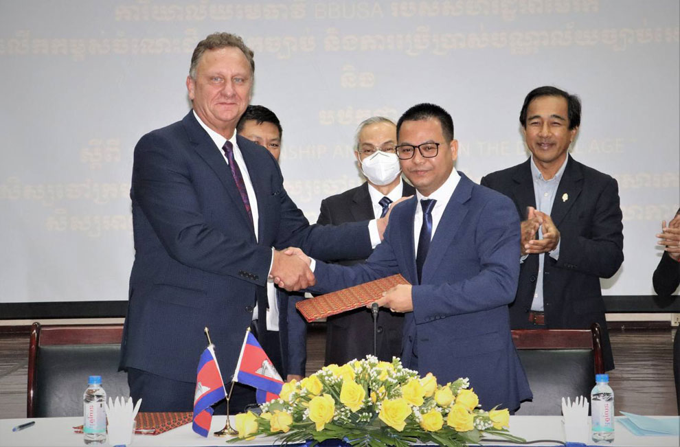 On behalf of Minister of Justice Koeut Rith, justice ministry secretary of state Chin Malin signed a memorandum of understanding (MoU) with the Building Bridges USA (BBUSA) Law Office on “Enriching legal knowledge and the use of an electronic law library”, in a ceremony held at the Royal Academy for Judicial Professions on January 27.