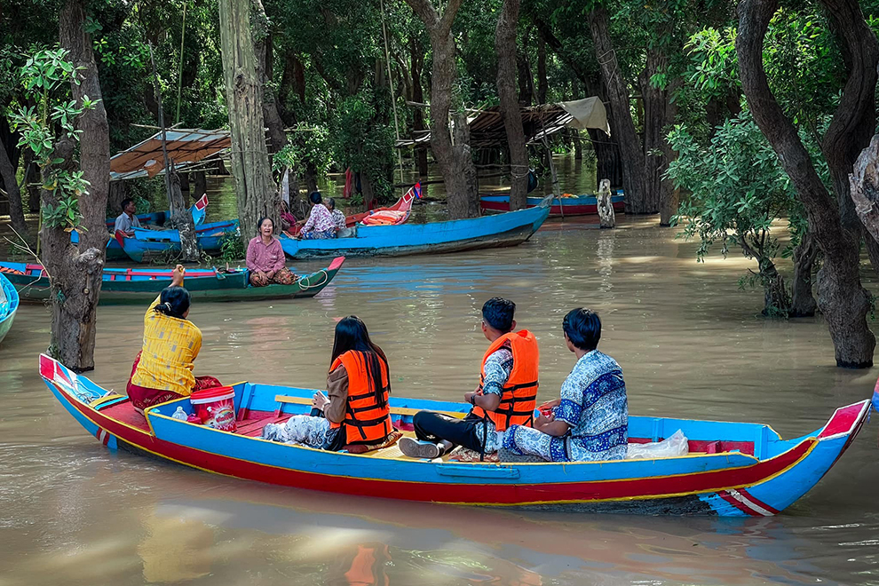This occupation is only seasonal, lasting from August until late November or early December. Tourists can enjoy experiences such as observing the local way of life – including stilt houses, fish and prahok production – or rowing through the flooded forest to admire the scenery, do some bird watching or watch the sun set over the lake.
