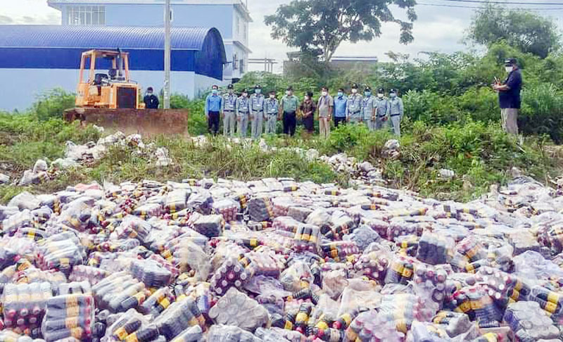 The Kingdom’s top consumer protection agency on June 17 destroyed nearly 30,000 bottles of dong quai wine with high methanol content in Banteay Meanchey province’s Poipet town, where seven died after consuming the tainted hooch.