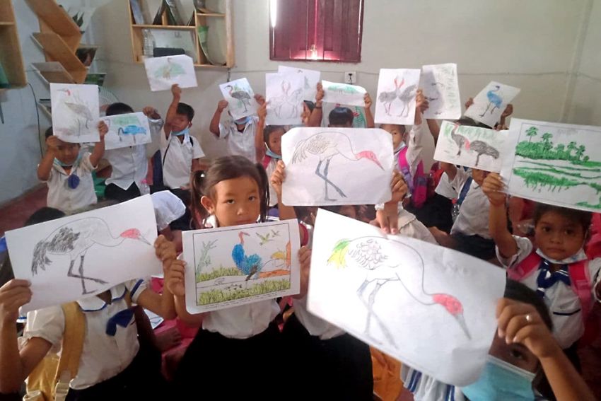 A library to educate the youth about cranes and wetlands was launched this past weekend in the Anlung Pring Protected Landscape in Kampot province’s Kampong Trach district, where the main target group for the library is located.