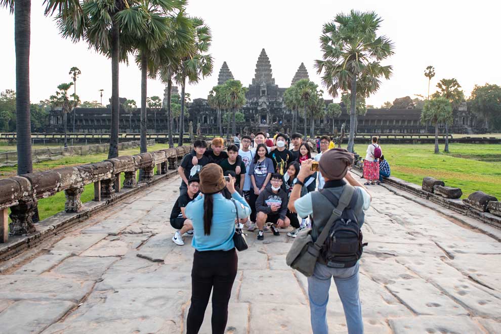 Foreign tourists visit the Royal Palace in Phnom Penh in February 2023. Hong Menea