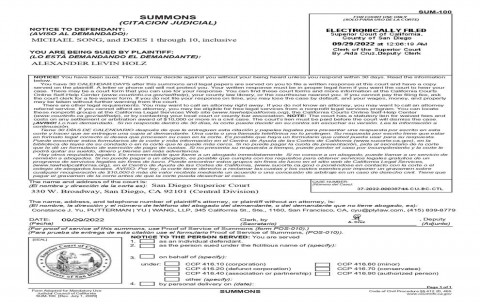 NOTICE TO DEFENDANT: MICHAEL SONG, AND DOES 1 through 10, inclusive