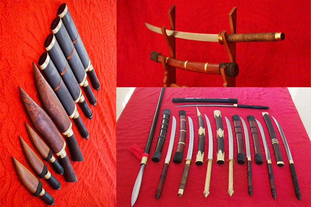 Swordsand sheaths forged and crafted by Ron Nopann in Siem Reap’s Prasat Bakong district. PHOTO SUPPLIED