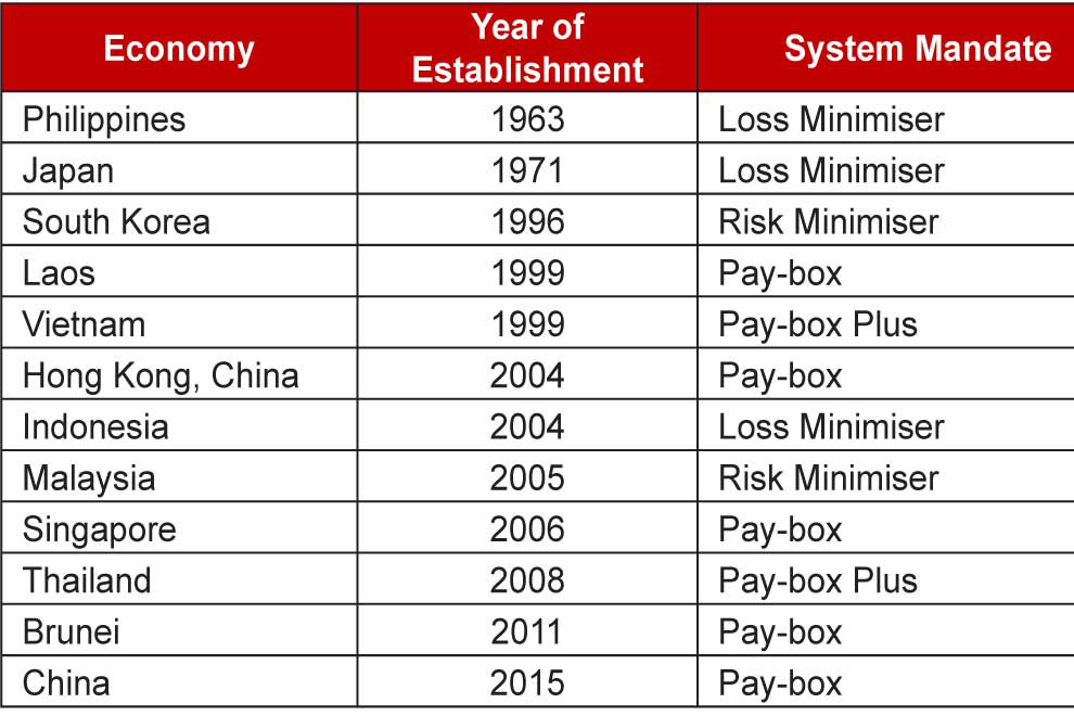 Nations across the ASEAN+3 region recognise the benefits of having such a safeguard and most of them have in place an explicit deposit protection or insurance scheme (Table 1). Their schemes differ depending on mandate (and coverage). Several countries narrowly define the mandates of deposit insurers, focusing on the reimbursement of insured deposits (“Pay-box”) or incorporating specific resolution mechanism (“Pay-box Plus”).