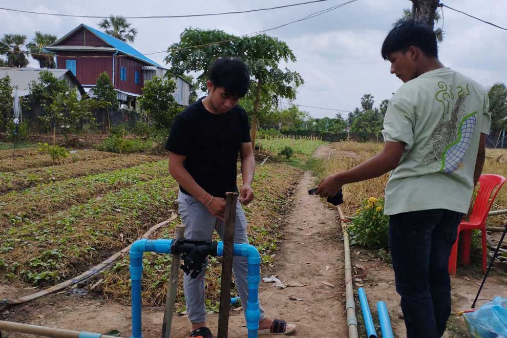 Koy Borin, a 50-year-old farmer from Ou Rumchek village, tucked away in Kandal province’s Sa’ang district, is the pioneering user of this smart irrigation solution, which the student team has christened “CAM-Smart Irrigation”.