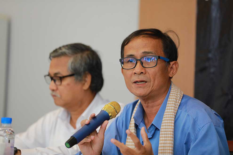 Grassroots Democratic Party (GDP) chairman of the board Yang Saing Koma speaks at a press conference in July. Hong Menea