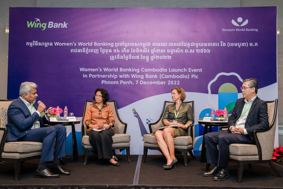 The launch event highlighted findings and recommendations from Women’s World Banking’s work with financial service providers in Cambodia over the past two years, including Wing Bank and AMK Microfinance Institution.