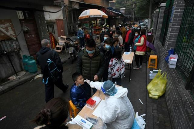 People line up to be tested for Covid in Wuhan in China's central Hubei province. AFP