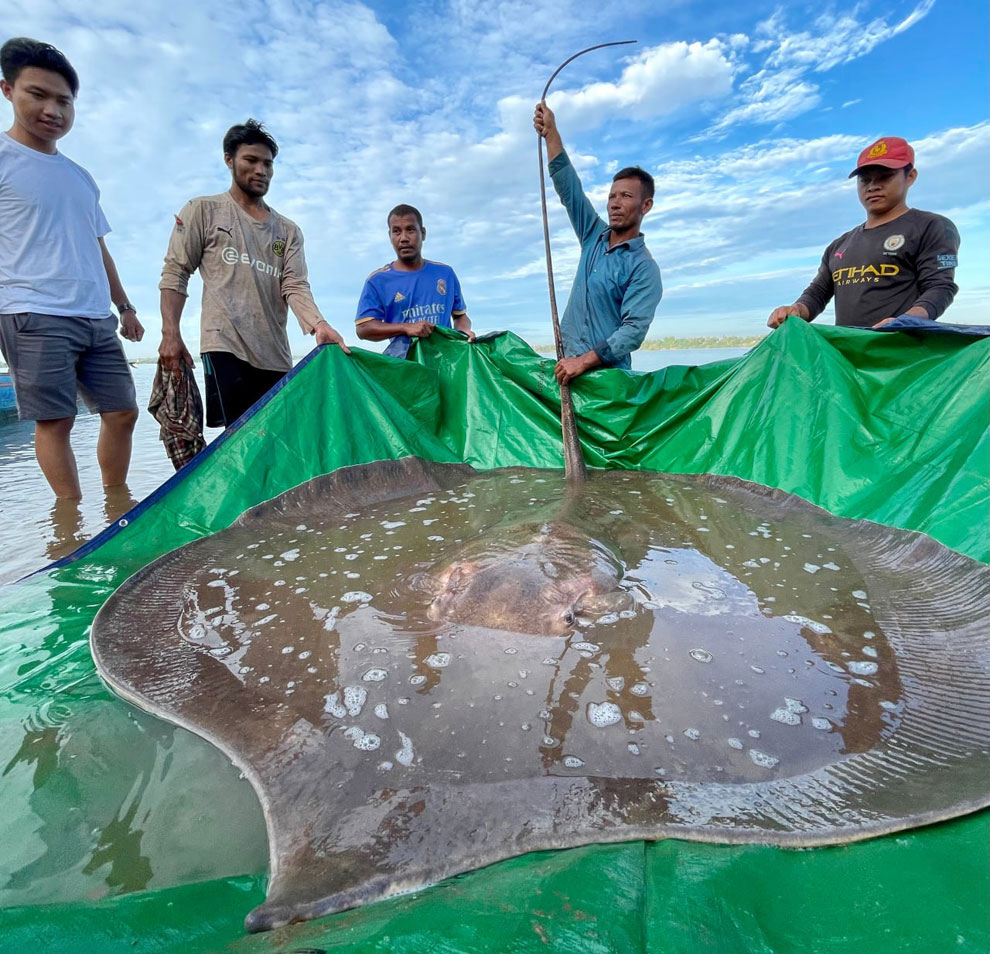 The most spectacular catch was the the record-setting giant stingray (Urogymnus polylepis) which was discovered in Stung Treng province in June 2022. At 3.98m in length and 2.2m in width, the 300kg specimen was the largest ever measured by researchers.
