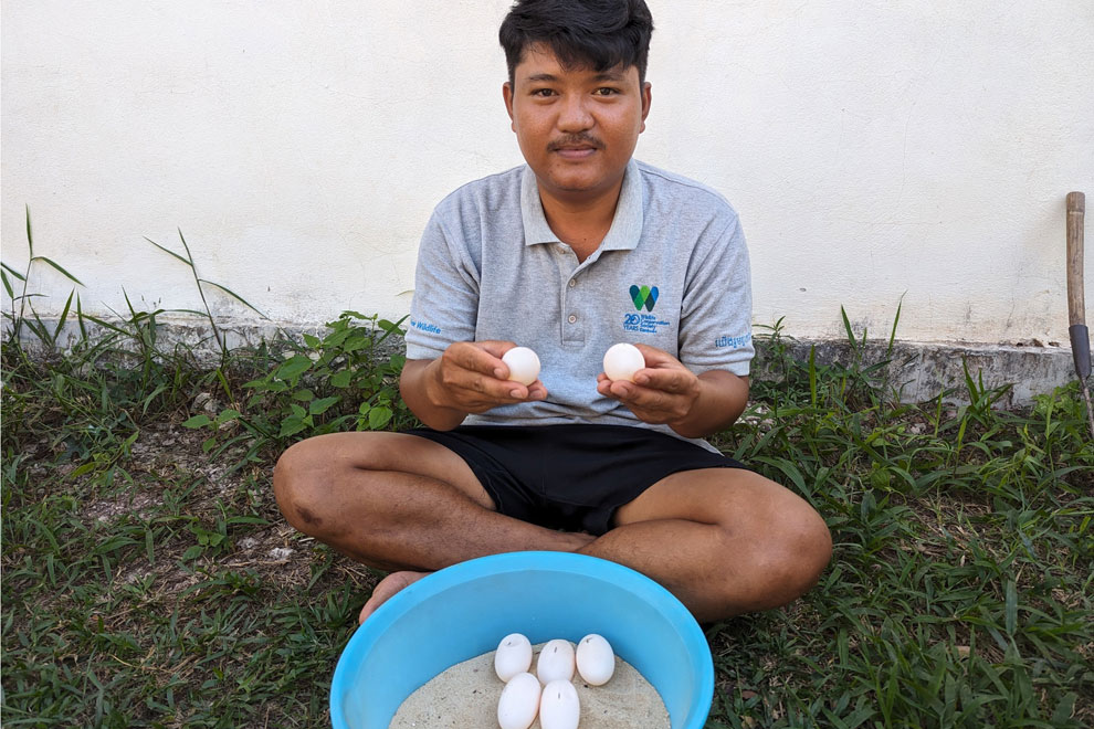 A team from the Fisheries Administration (FiA) and Wildlife Conservation Society (WCS) Cambodia said they have collected 206 royal turtle eggs from 20 clutches in the past two months.