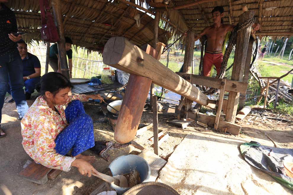 An eco-friendly enterprise processes fish and ambok rice flakes in Battambang last month. Kim Sarom