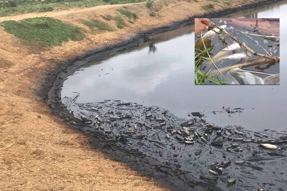 Waste liquids were released into the Sangke River in Battambang province last week. PHOTO SUPPLIED