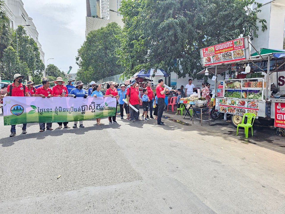 Young people from the Cambodian Education and Waste Management Organization (COMPED), the Farmer Association for Livelihood Development (FALD) and others joined the bodies for the campaign, which aligned with the ministry’s “Today I will not use plastic” initiative.