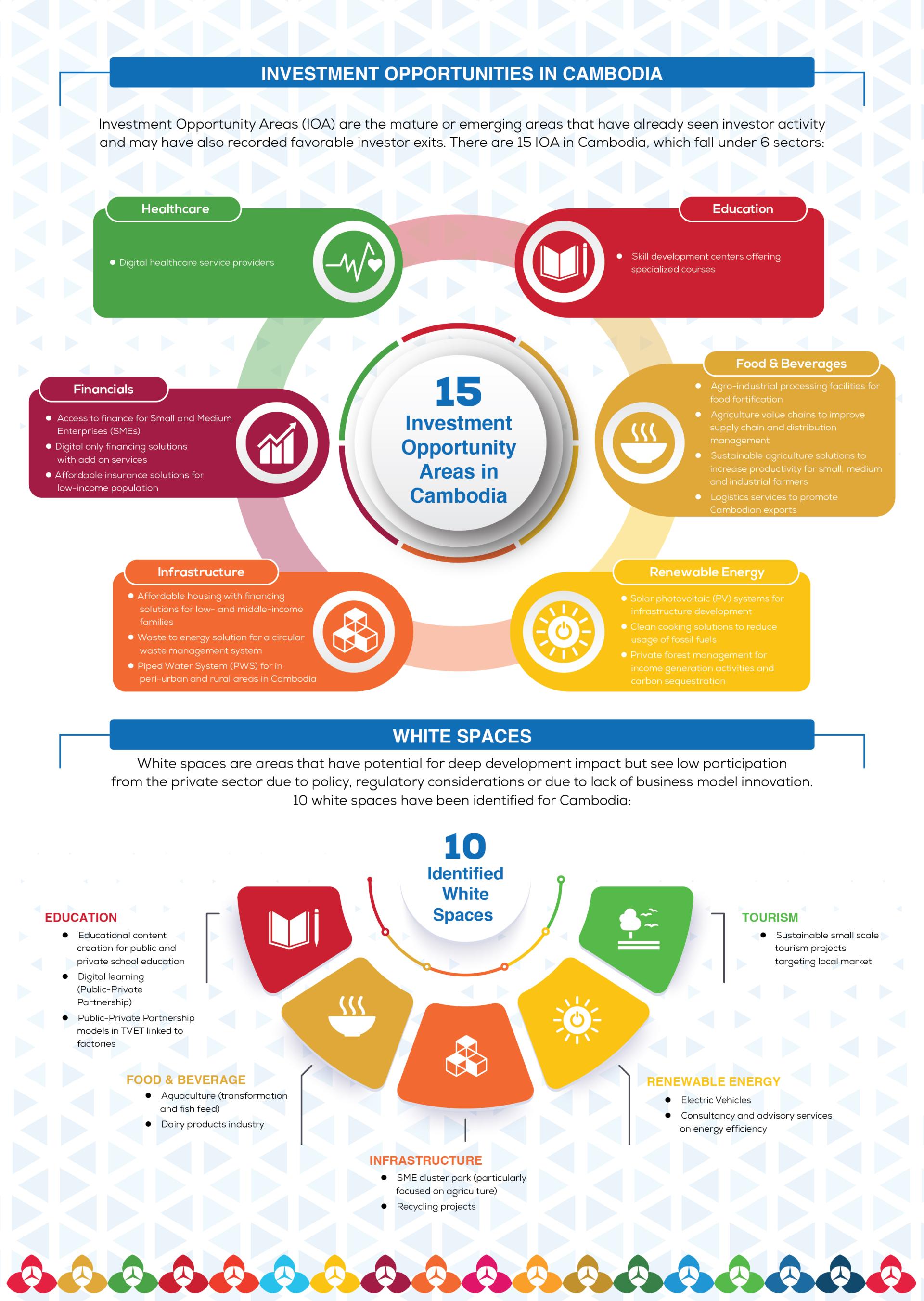 The SDG map is a market intelligence tool that identifies viable investment opportunity areas aligned with the Cambodia SDGs to accelerate sustainable development.