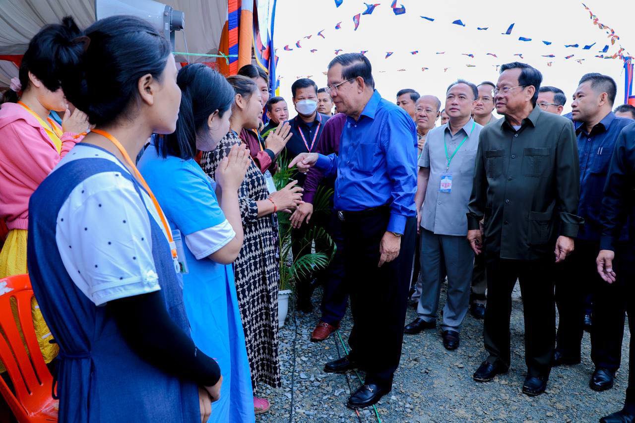 Prime Minister Hun Sen meets with workers in Phnom Penh on May 27. SPM