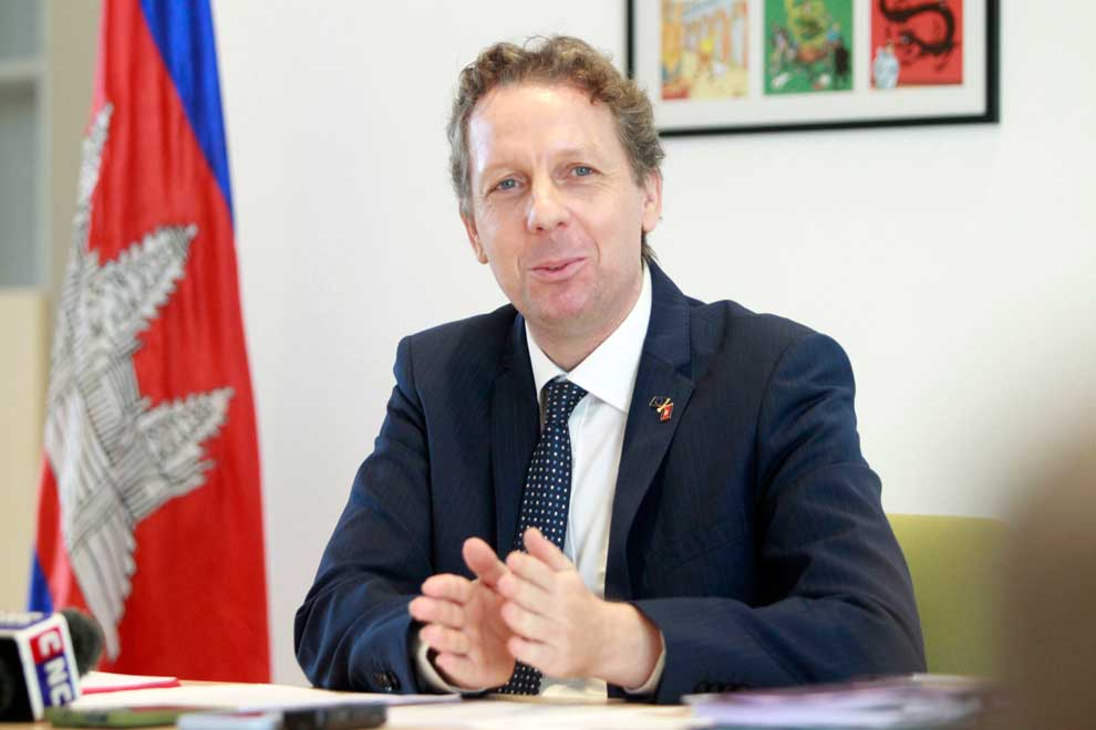 New EU ambassador Igor Driesmans speaks at the press conference on October 25. Heng Chivoan