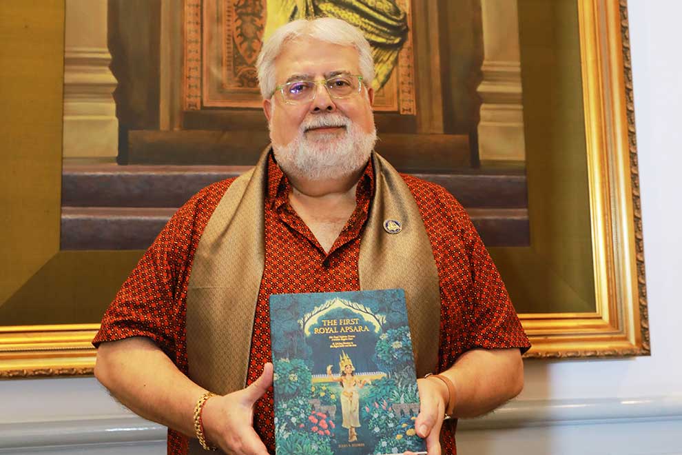 Ambassador Julio Jeldres and his book The First Royal Apsara during the launch event on July 7. Hong Menea