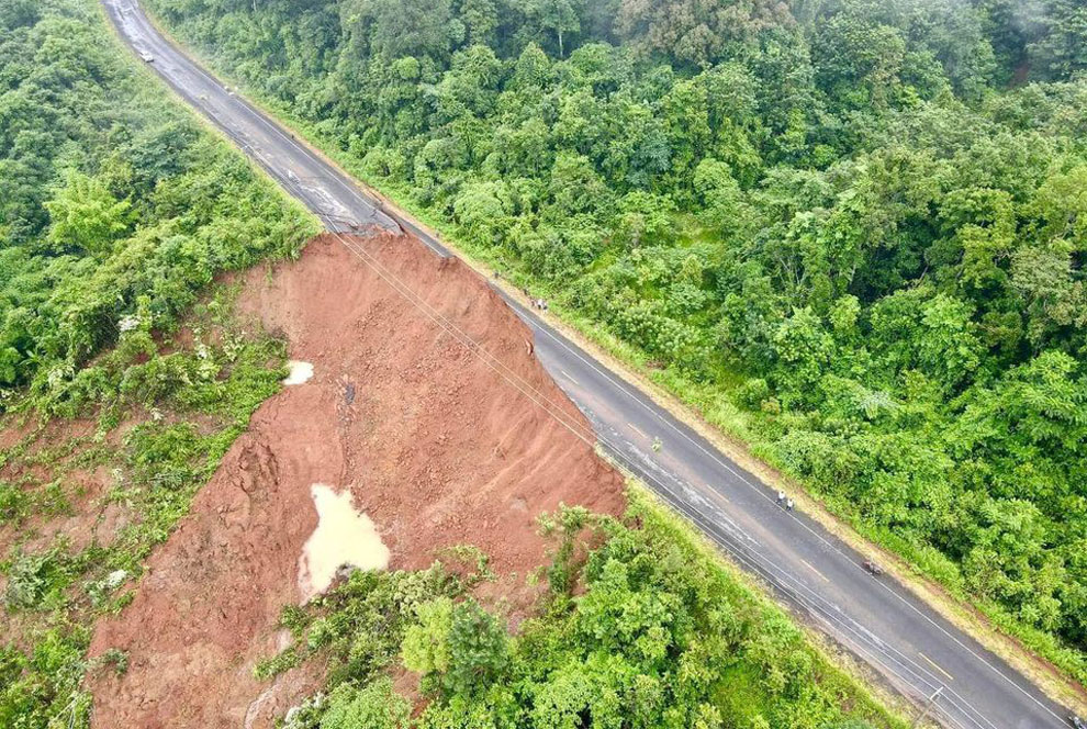 A section of Road 76A was cut by heavy rain-induced landslide on the night of August 1 in Sen Mmnonorom commune's Andoung Kraloeng village of Mondulkiri province's O'Raing district. MONDULKIRRI ADMINISTRAION