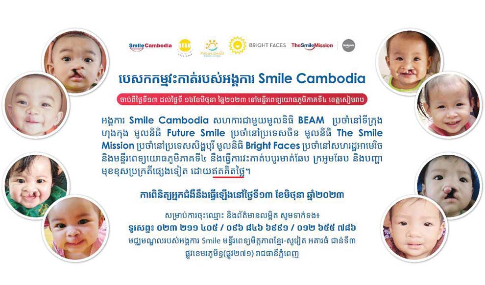 Smile Cambodia, Military Region 4 Hospital, and several international partners, have announced that they will provide free surgeries next month to people born with cleft lips or palates and other facial deformities, in Siem Reap.