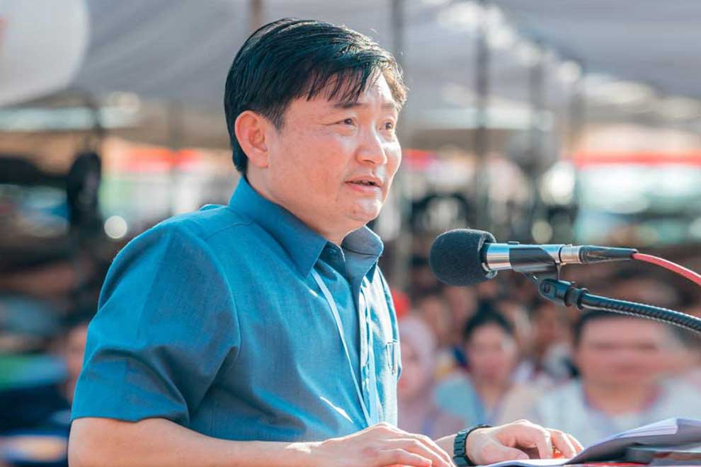 Labour minister Heng Sour speaks at a gathering with factory workers on November 11. STPM