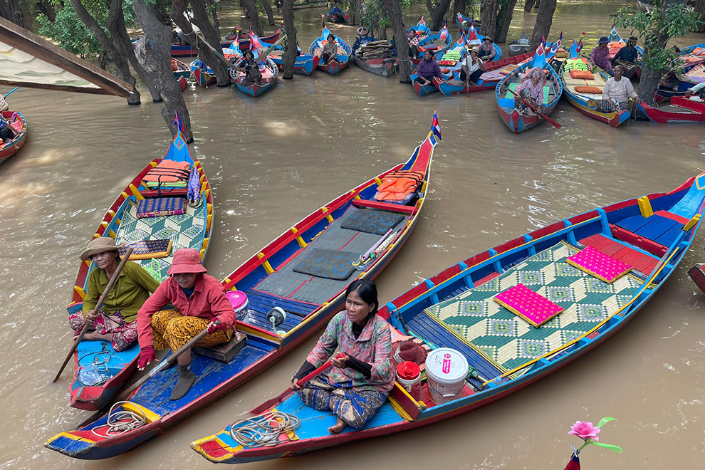 The women, usually middle-aged, hail from the three villages of the Kampong Phluk commune in Siem Reap’s Prasat Bakong district, a popular natural tourism area on the Tonle Sap Lake. Each morning during the rainy season, they gather under the shade of large trees, waiting to paddle tourists in their small wooden boats, which are equipped with mats, life vests, umbrellas and cushions.