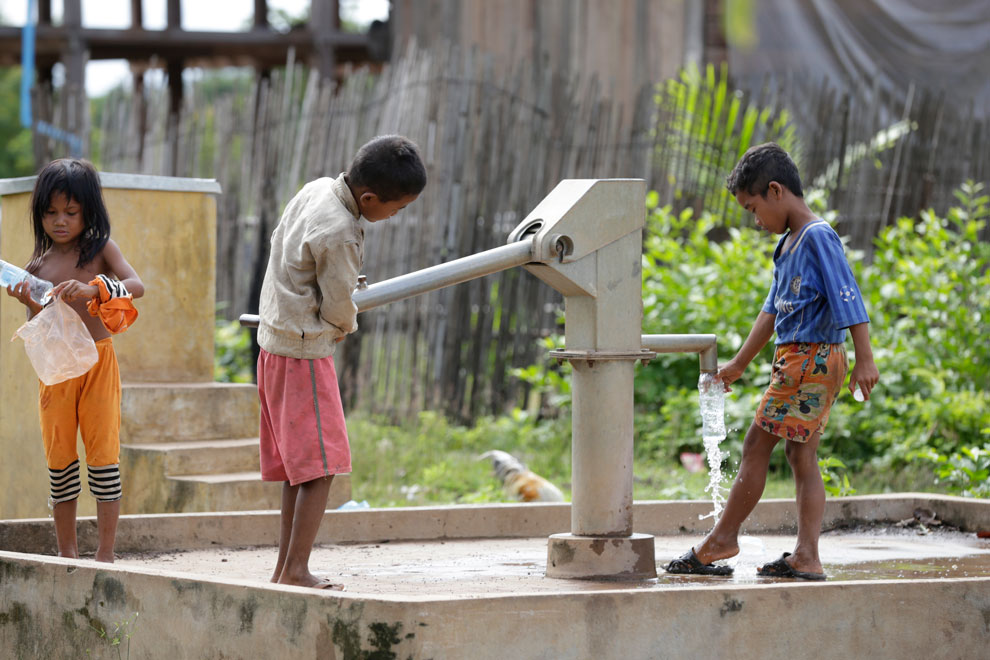 Young boys take turns washing their legs with water from a well pump in Preah Vihear’s Chheb district. Hong Menea