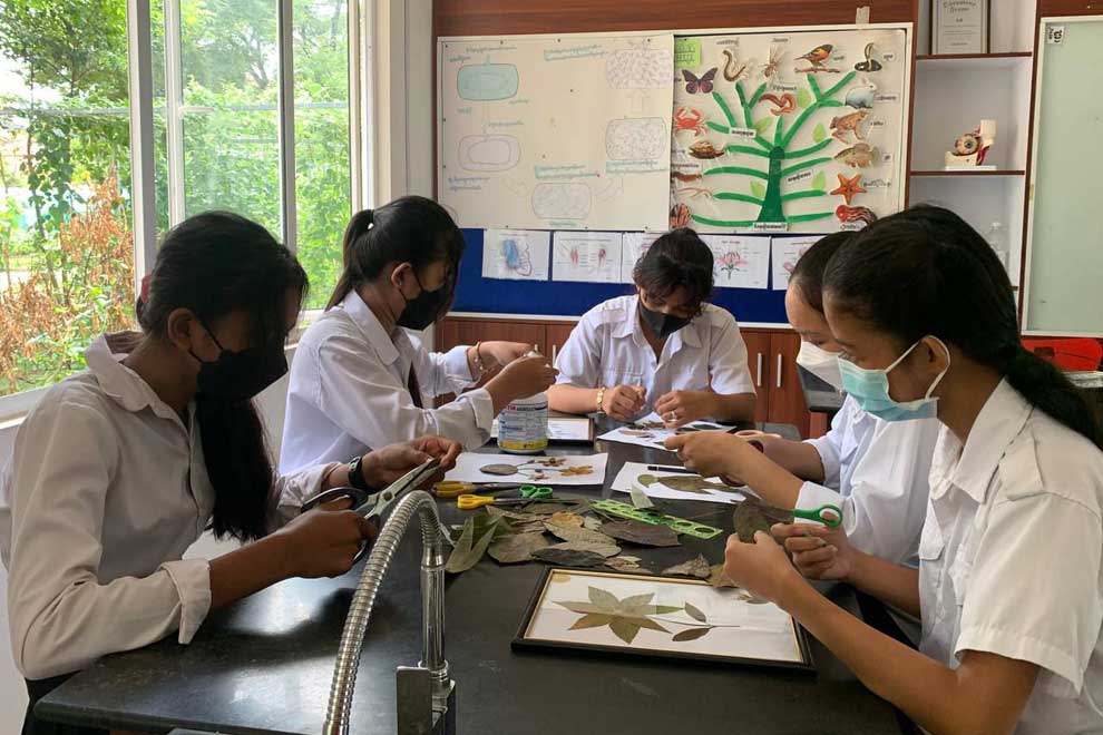 Saing Sokhai, a biology teacher at the high school, says the processing technique was initially introduced as part of the 10th-grade curriculum. Sokhai primarily offers guidance and suggests design improvements.