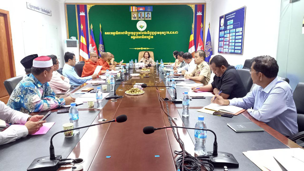 The National Committee for Counter Trafficking of Cambodia (NCCT) holds discussions between the Ministry of Interior, the Ministry of Religions and Cults, NCCT, Caritas Cambodia, and representatives from Muslim, Christian, and Buddhist communities on July 10. NCCT