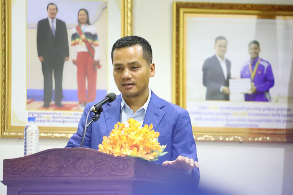 Sar Sokha, outgoing Ministry of Education, Youth and Sport secretary of state, speaking at a recent meeting with the leadership of the ministry’s physical education and sport department and a team tasked with combating human and drug trafficking. PHOTO SUPPLIED