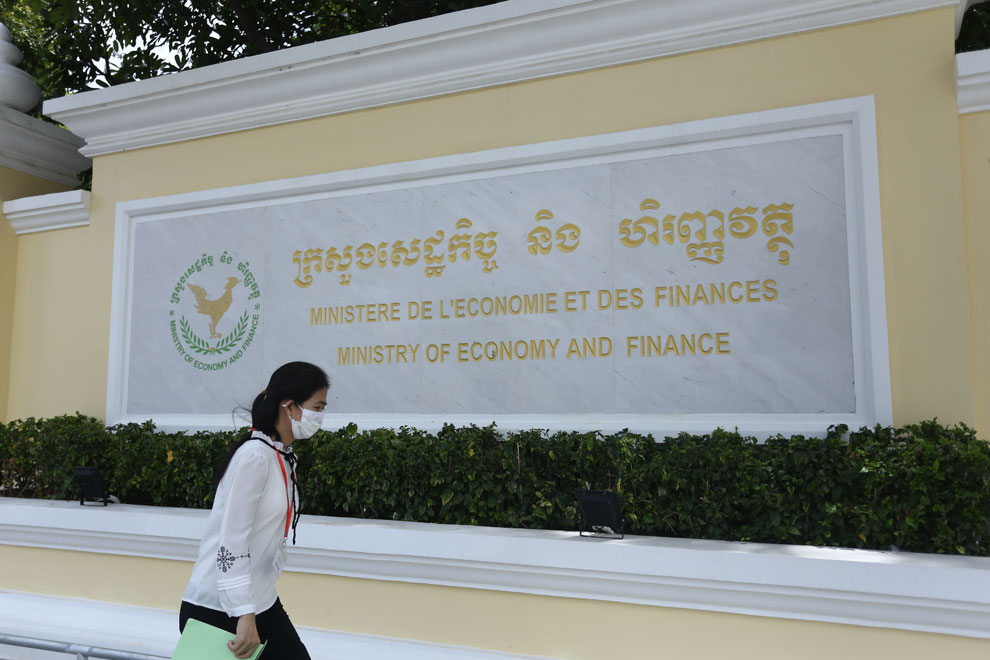 A woman walks in front of the Ministry of Economy and Finance. Hong Menea