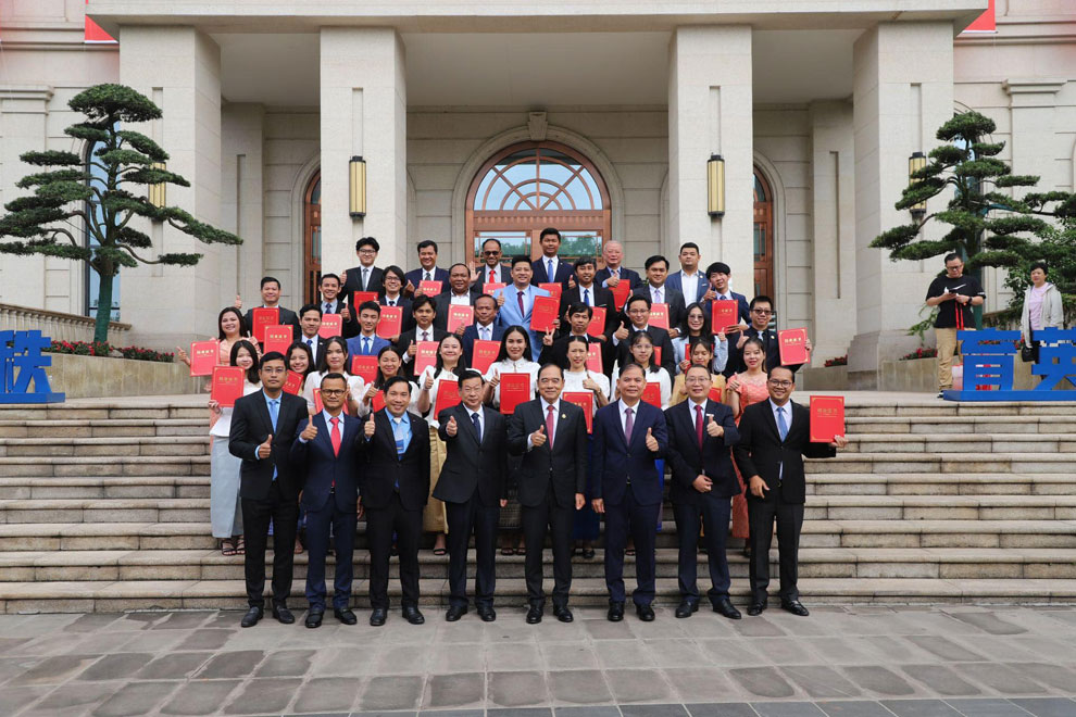 Senior Minister Ly Thuch conferred diplomas to 34 trainees who successfully completed a Sino-Cambodian cross-border digital trade course for intermediate management staff at the Chongqing Vocational Training College in China. They represent various sectors including government, private enterprises and higher education institutions.