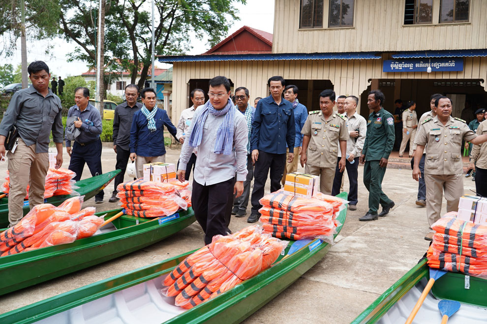Six motor boats, 44 life jackets, 24 pairs of binoculars and 5.5 million riel ($1,350) from the Kratie provincial governor were presented to the eleven river guard stations.