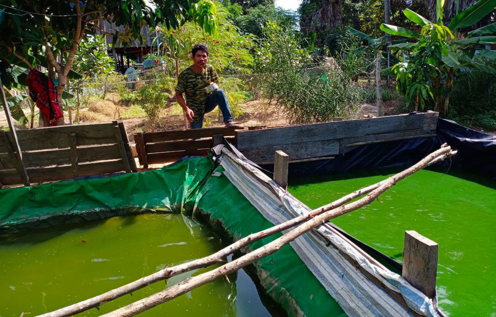 Kang Bour is one of the trainees and the chief of Koh Kroach Community Fishery, Sre Krasaing commune, Siem Bouk district of Stung Treng. He raises Clarius Catfish and grows vegetables at home after being taught these skills.